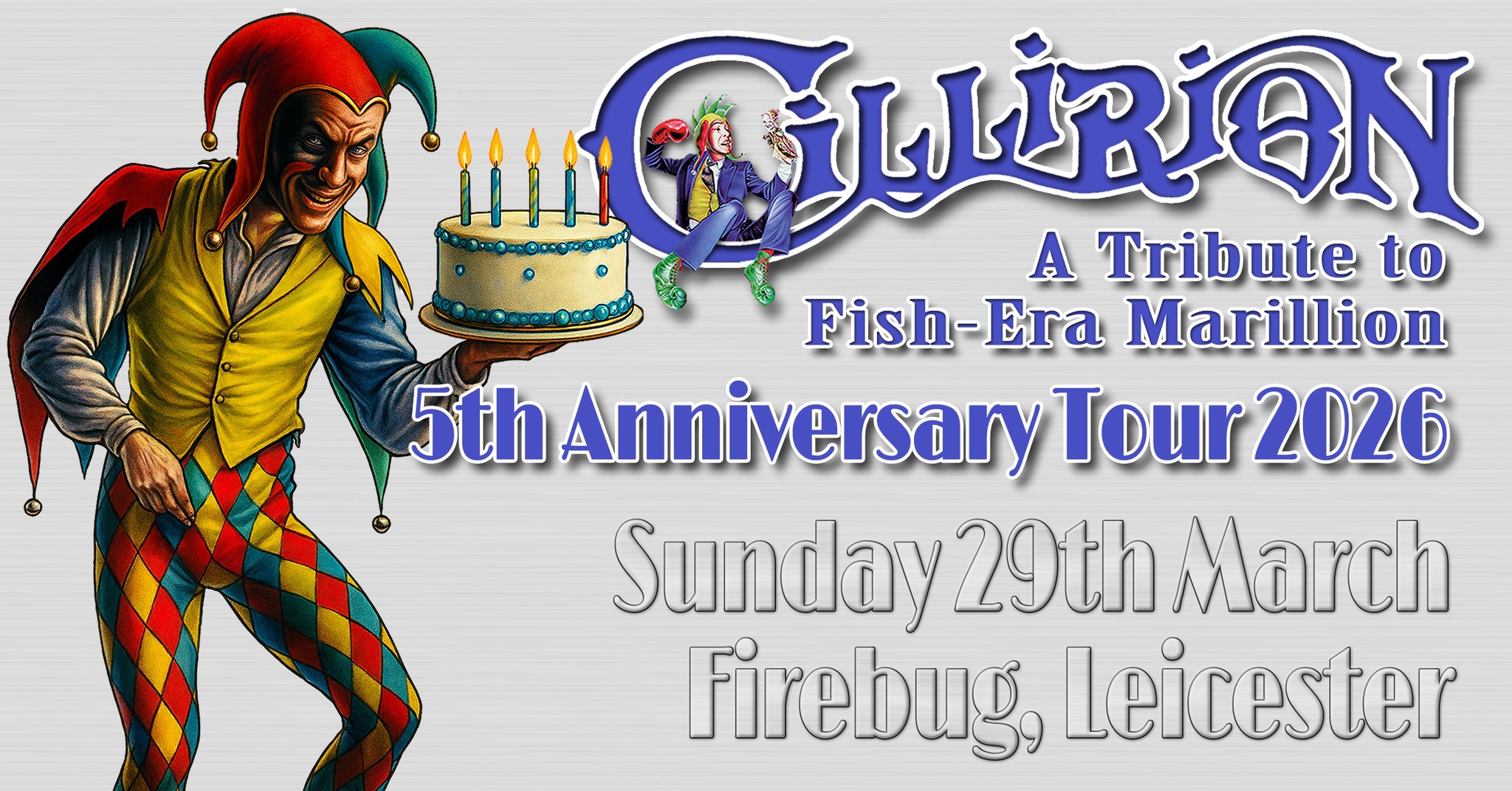 Join them as they celebrate five incredible years of bringing Fish-era Marillion to life. Expect a connoisseur’s selection of classics from Script for a Jester’s Tear, Fugazi, Misplaced Childhood, Clutching at Straws and more — performed with the passion and authenticity that has made Cillirion a favourite among Marillion fans.
