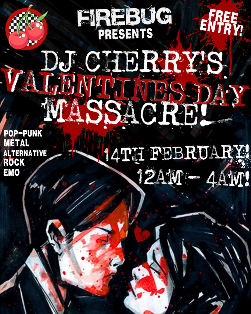 Home Past Events - Firebug Bar DJ Cherry’s Valentine’s Day Massacre Ask For CliveProud to be part of the national ‘Ask for Clive‘ LGBTQ+ inclusivity campaign for bars, pubs and clubs.Weekly Pop QuizReview us on Trip AdvisorEnvironmental Efforts Date14 Feb 2026Expired! Time 11:55 pm - 4:00 amDJ Cherry’s Valentine’s Day MassacreShare this event+ Add to Google Calendar+ iCal / Outlook export