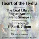 Firebug, United Kingdom, LE1 5JN Sat 11th April 2026 Heart of the HydraPlus special guests:The Leaf LibraryRogue NotionSilent Synapse Live at Upstairs at Firebug, 1 Millstone Ln, Leicester LE1 5JN7pm18+ Heart of the Hydra at Firebug event tickets from TicketSource , ...Primal – Free Club Night11:55 pm